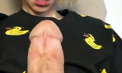 Thick white dinky teen boy soft to hard massive dick cum