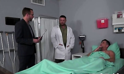 Hunk doctors jerk muscle in three way