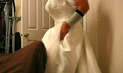 Black satin maxi lengthy fetish black dress on crossdresser sissy cuckold bondage & discipline gay jerking in a silk apparel