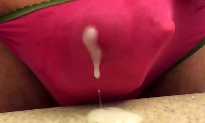 Pink panty precum and spunk