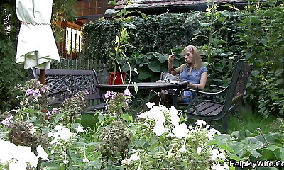 Old hubby watching insane hunk drills his teen wife