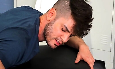 Locker room fellow assfisted by rimming BF