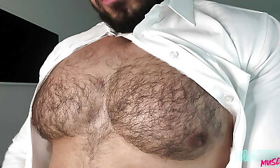 Muscle Boy Worships and Jizzes on Bodybuilder's Chest